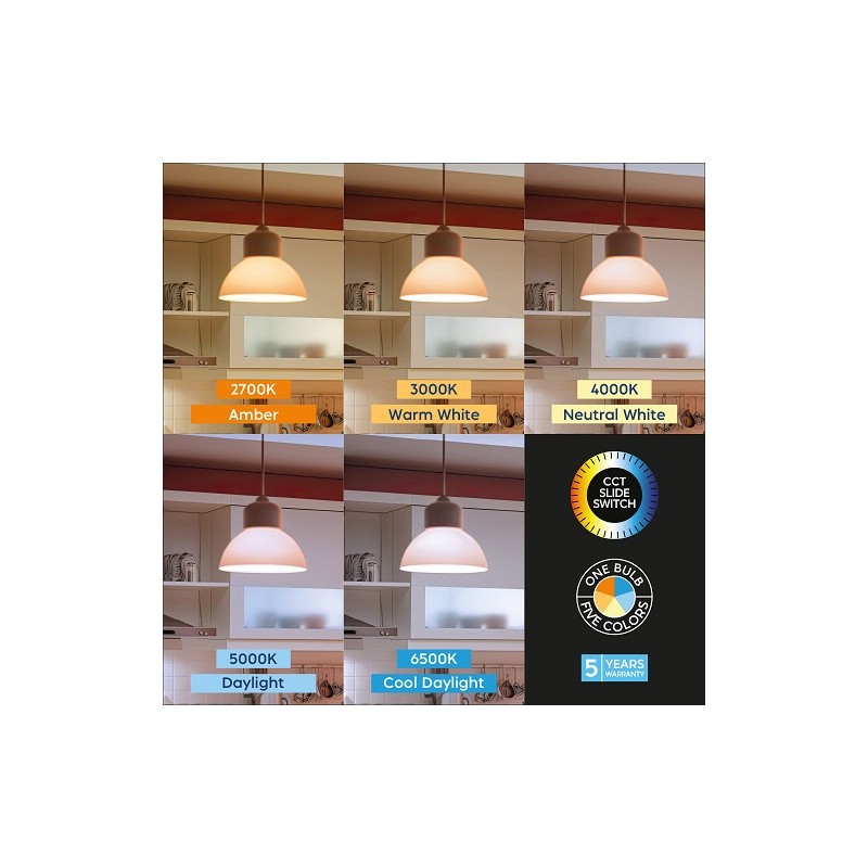Grâce à son système multi température, l’ampoule propose une palette modulable allant du blanc chaud 2700K au blanc froid 6500K. Vous pouvez ainsi adapter facilement l’ambiance lumineuse sans changer d’ampoule, optimisant le confort visuel et la convivialité de chaque espace.